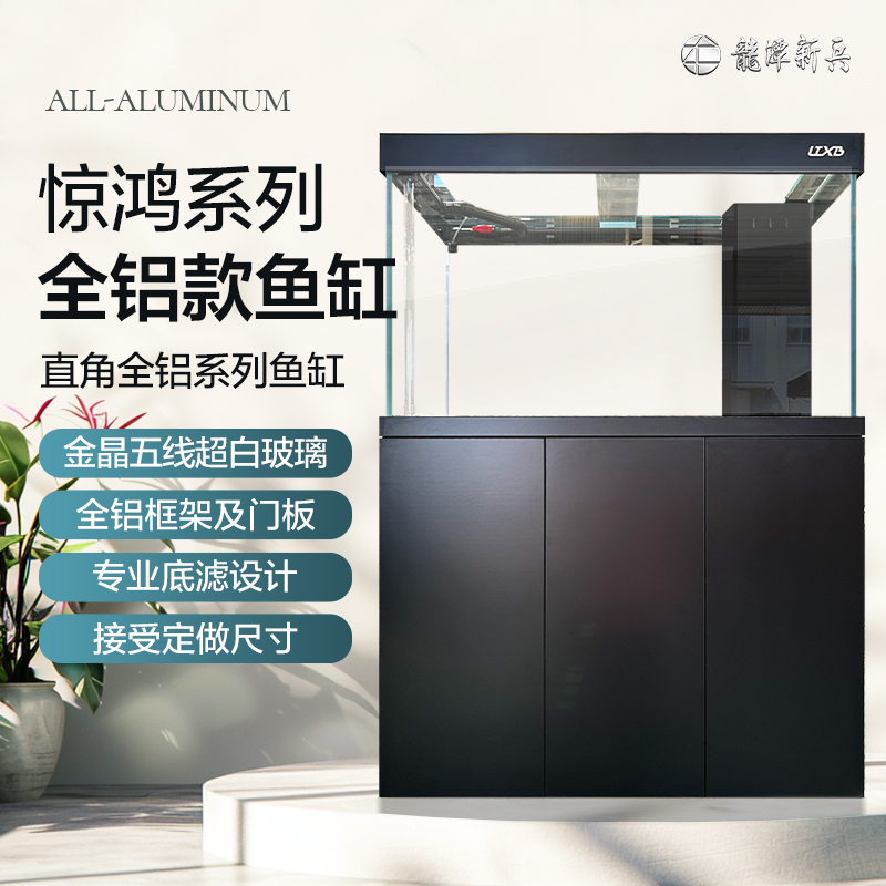 LTXB/龙潭新兵惊鸿系列全铝款直角底滤鱼缸超白玻璃极简风可定制